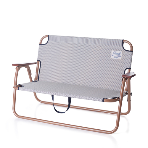安定感のある2人がけアウトドアチェアです。コンパクトに折りたためるタイプの軽量ベンチで持ち運びハンドルもついています。ボーダーデザインがかわいらしい印象で、ウッドアームレストもおしゃれで室内に置いても映えるアウトドアチェアだと思います。重量は約3.8kg、 耐荷重は約160kgです。